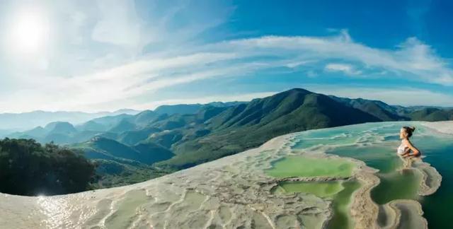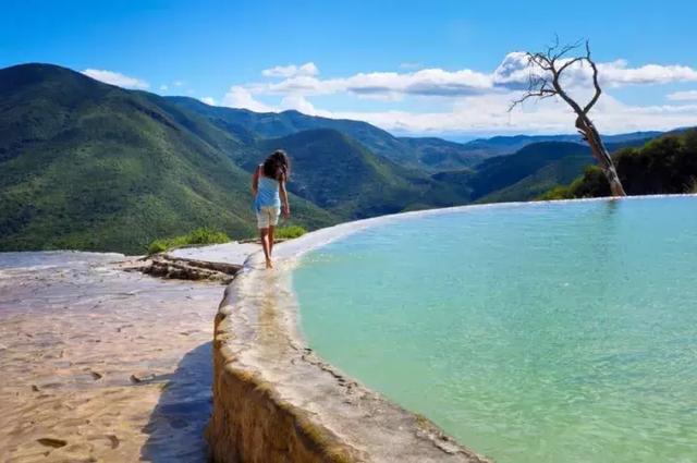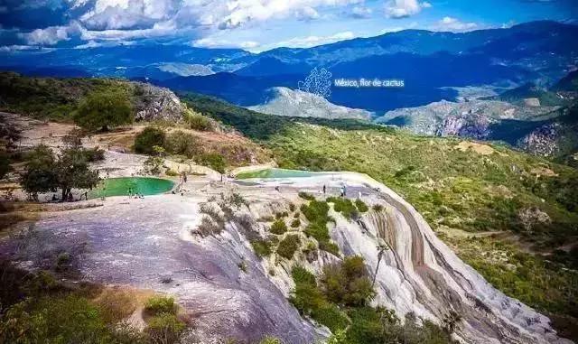 严格来说,瓦哈卡的滚水石瀑(Hierve el Agua)不算在尤卡坦半岛,不过离得不远。因其在悬崖边上的壮观天然景观,实在让小编忍不住安利一波。富含矿物的泉水沿着悬崖,经过千百年的流淌,沉淀成白色的如瀑布一般的石化景观,有点像土耳其的棉花堡。