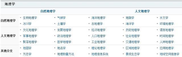 学者把地理学分为自然地理学和人文地理学两部分,或分为自然地理学、经济地理学和人文地理学三部分,下面再分次级分支学科。